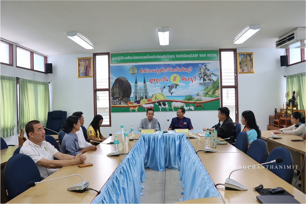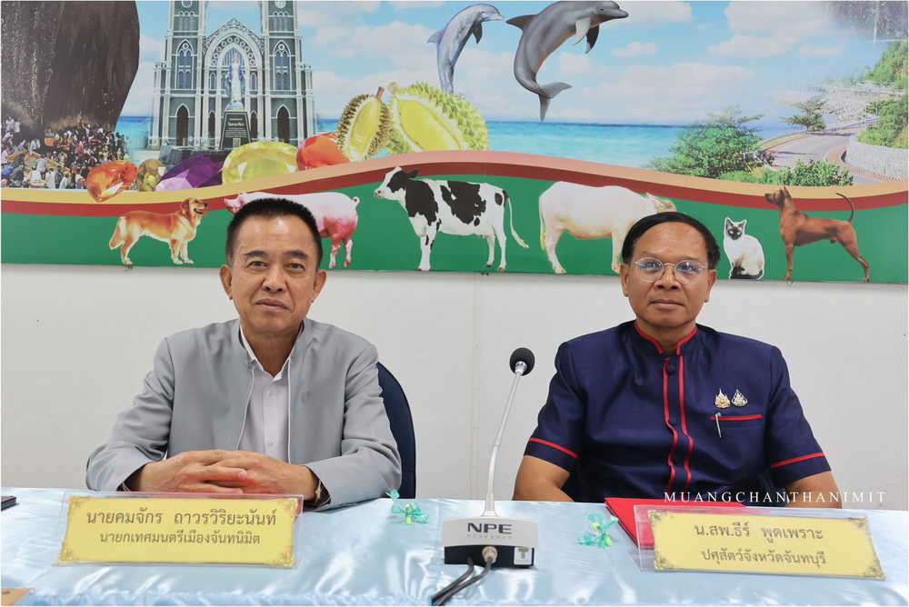 วันที่ 24 ตุลาคม 2568 เวลา 10.00 น. น.สพ.ธีร์ พูดเพราะ ปศุสัตว์จังหวัดจันทบุรี ลงนามบันทึกข้อตกลงความร่วมมือ(MOU) กับ นายคมจักร ถาวรวิริยะนันท์ นายกเทศมนตรีเมืองจันทนิมิต ณ ห้องประชุมโอบจันทน์ สำนักงานปศุสัตว์จังหวัดจันทบุรี ลงนามบันทึกข้อตกลงร่วมกันผนึกกำลังในการควบคุมประชากรสุนัขจรจัด ลดความเสี่ยงต่อโรคพิษสุนัขบ้า โดยเทศบาลจะรณรงค์ประชาสัมพันธ์ สร้างความเข้าใจแก่ประชาชน และผู้เลี้ยงสุนัขในชุมชนให้ช่วยเจ้าหน้าที่เทศบาลดักจับสุนัขจรจัด เพื่อให้เจ้าหน้าที่ปศุสัตว์ผ่าตัดทำหมันทุก 3 เดือน ตามสถานที่ที่เทศบาลนัดหมาย โดยเทศบาลสนับสนุนบุคลากร เวชภัณฑ์ และวัคซีนป้องกันโรคพิษสุนัขบ้า เพื่อควบคุมประชากรสุนัขจรจัด ไม่ให้มีมากเกินไป จนสร้างปัญหา ก่อเหตุเดือดร้อนรำคาญแก่ประชาชน ช่วยลดความเสี่ยงต่อโรคพิษสุนัขบ้า และจะขยายผลให้ปศุสัตว์อำเภอทำบันทึกความร่วมมือให้ครบทุกท้องถิ่นต่อไป ทั้งนี้ ขอความร่วมมือให้ประชาชนเลี้ยงสัตว์อย่างมีความรับผิดชอบ ไม่นำสัตว์เลี้ยงไปปล่อยทิ้งเป็นสัตว์จรจัด ซึ่งจะมีความผิดตามพระราชบัญญัติป้องกันการทารุณกรรมและการจัดสวัสดิภาพสัตว์ พ.ศ.2557 กำหนดโทษปรับไม่เกิน 40,000 บาท