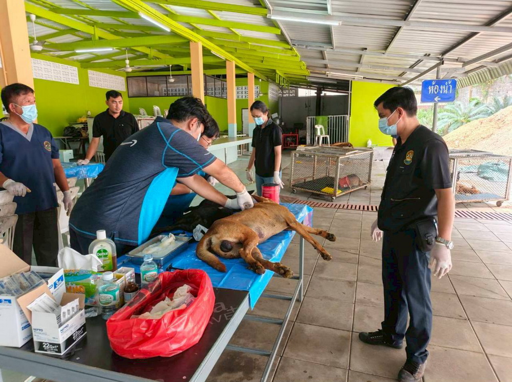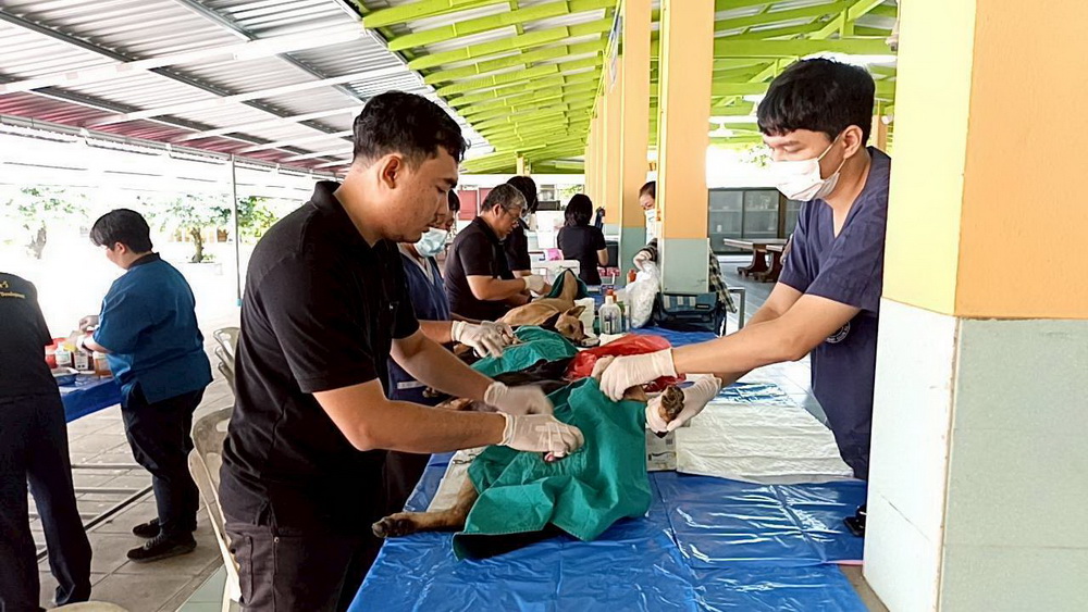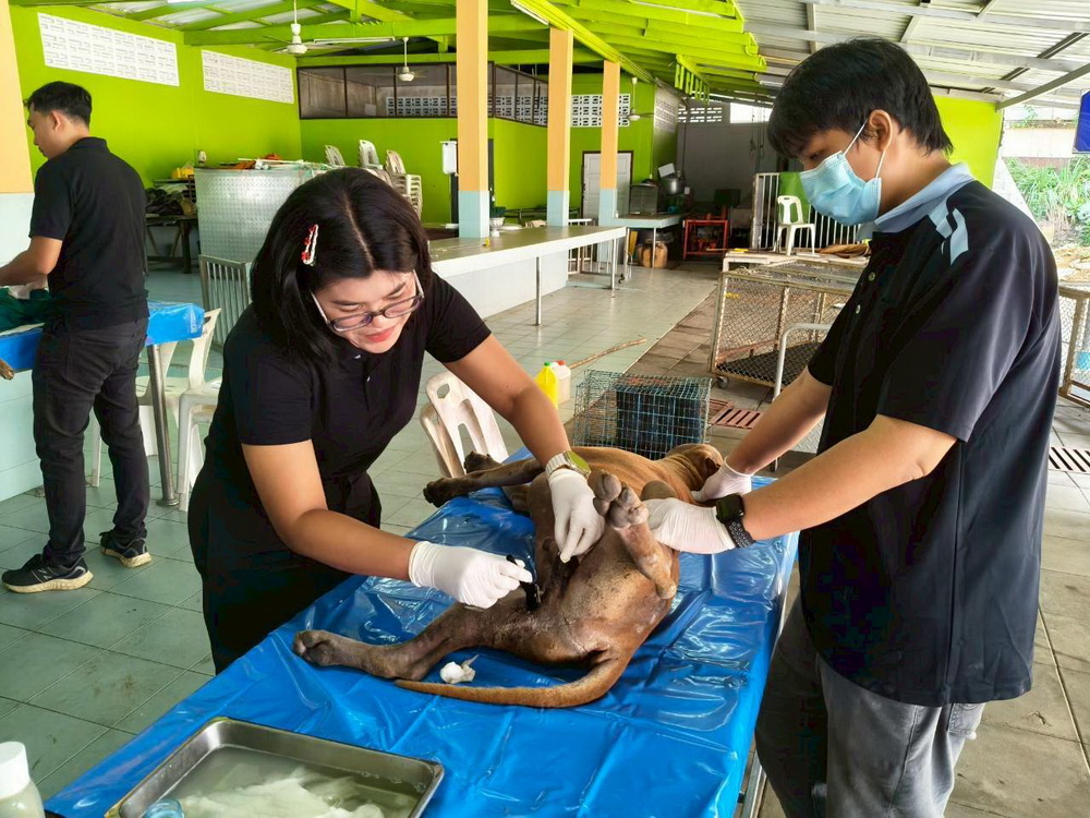 วันที่ 7 พฤศจิกายน 2568 เวลา 09.30 น. น.สพ.ธีร์ พูดเพราะ ปศุสัตว์จังหวัดจันทบุรี พร้อมด้วย น.สพ.มนัสกิจ พลศรี หัวหน้ากลุ่มพัฒนาสุขภาพสัตว์ นายสมพร พานิชรัมย์ ปศุสัตว์อำเภอแหลมสิงห์ รักษาราชการแทนปศุสัตว์อำเภอท่าใหม่ พร้อมเจ้าหน้าที่ปศุสัตว์อำเภอท่าใหม่และเจ้าหน้าที่ปศุสัตว์อำเภอข้างเคียง ร่วมกับเจ้าหน้าที่เทศบาลตำบลเขาบายศรี ให้บริการฉีดวัคซีนป้องกันโรคพิษสุนัขบ้าและทำหมันในสุนัข-แมว เพื่อลดประชากรสัตว์ ในแหล่งท่องเที่ยว พื้นที่วัดเขาสุกิมและโรงพยาบาลเขาสุกิม ตำบลเขาบายศรี อำเภอท่าใหม่ จังหวัดจันทบุรี โดยให้บริการทำหมันสุนัข จำนวน 24 ตัว, ทำหมันแมว จำนวน 3 ตัว และฉีดวัคซีนป้องกันโรคพิษสุนัขบ้า จำนวน 50 ตัว พร้อมได้แนะนำการดูแลรักษาแผล หลังจากการผ่าตัดทำหมัน เพื่อให้สุนัข-แมวฟื้นตัวได้เร็วที่สุด