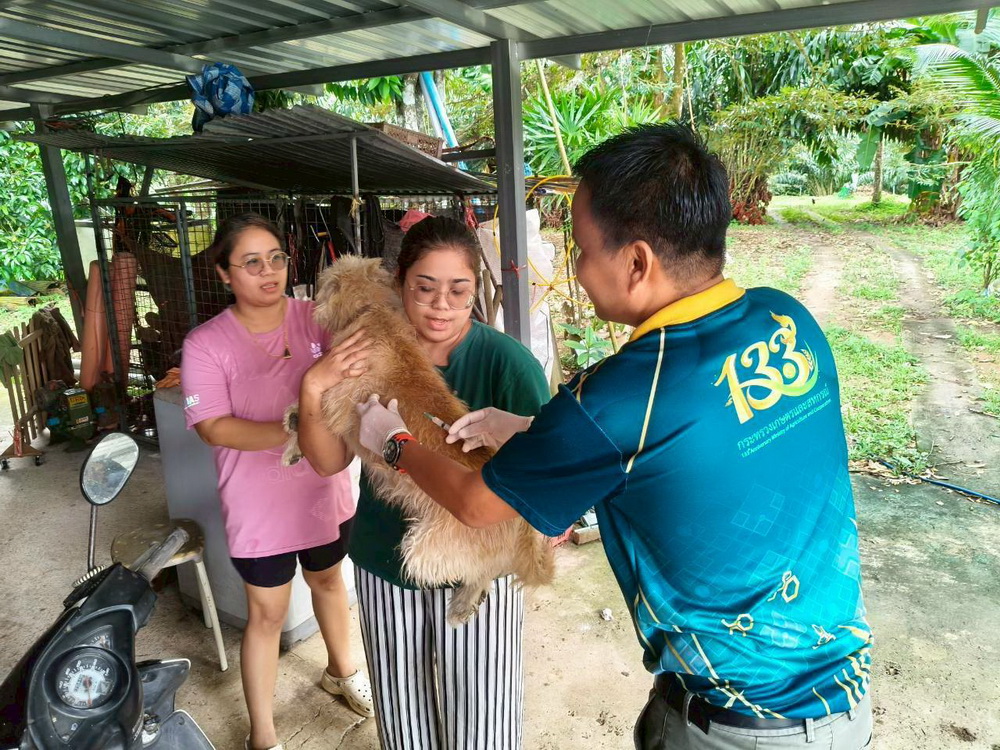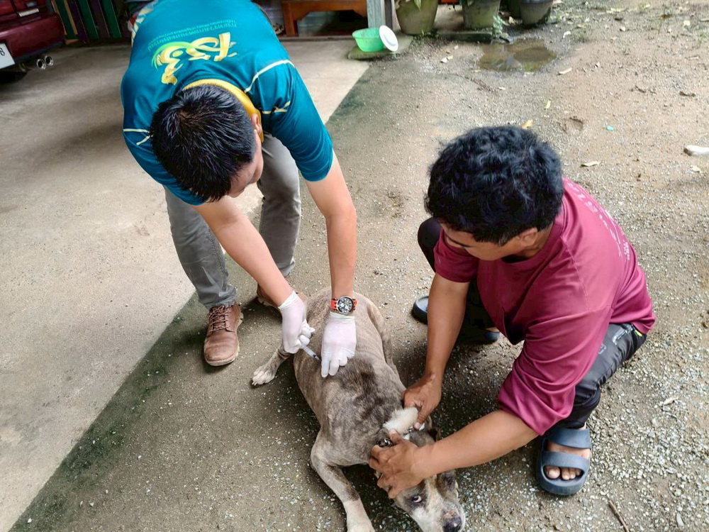 ปศุสัตว์อำเภอท่าใหม่ ลงพื้นที่ฉีดวัคซีนป้องกันโรคพิษสุนัขบ้า เพื่อความปลอดภัยของชุมชน