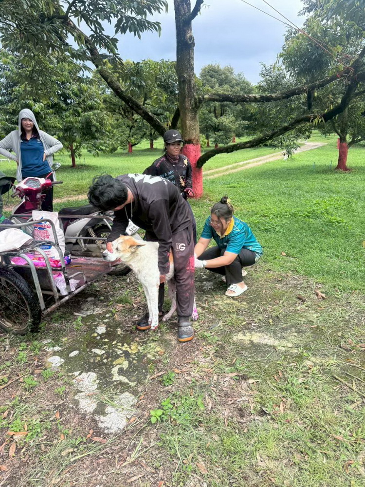 วันที่ 1 ตุลาคม 2568 เวลา 09.30 น. นายสมพร พานิชรัมย์ ปศุสัตว์อำเภอแหลมสิงห์ รักษาราชการแทนปศุสัตว์อำเภอท่าใหม่ พร้อมด้วยเจ้าหน้าที่ปศุสัตว์อำเภอท่าใหม่ ลงพื้นที่ร่วมกับเจ้าหน้าที่เทศบาลเขาบายศรี ผู้ใหญ่บ้าน ผู้ช่วยผู้ใหญ่บ้าน ในพื้นที่ หมู่ที่ 6 และ 9 ตำบลเขาบายศรี อำเภอท่าใหม่ จังหวัดจันทบุรี เพื่อฉีดวัคซีนป้องกันโรคพิษสุนัขบ้าในสุนัขจำนวน 165 ตัว แมวจำนวน 18 ตัว และได้ประชาสัมพันธ์ให้ชาวบ้านที่พบสัตว์ต้องสงสัยหรือถูกสัตว์กัด เบื้องต้นให้รีบแจ้งเจ้าหน้าที่ในพื้นที่โดยทันที เพื่อดำเนินการตามมาตรการควบคุมโรค หน่วยงานที่เกี่ยวข้องจะติดตามสถานการณ์อย่างใกล้ชิด และดำเนินมาตรการควบคุมโรคอย่างเข้มงวด เพื่อความปลอดภัยของชุมชน