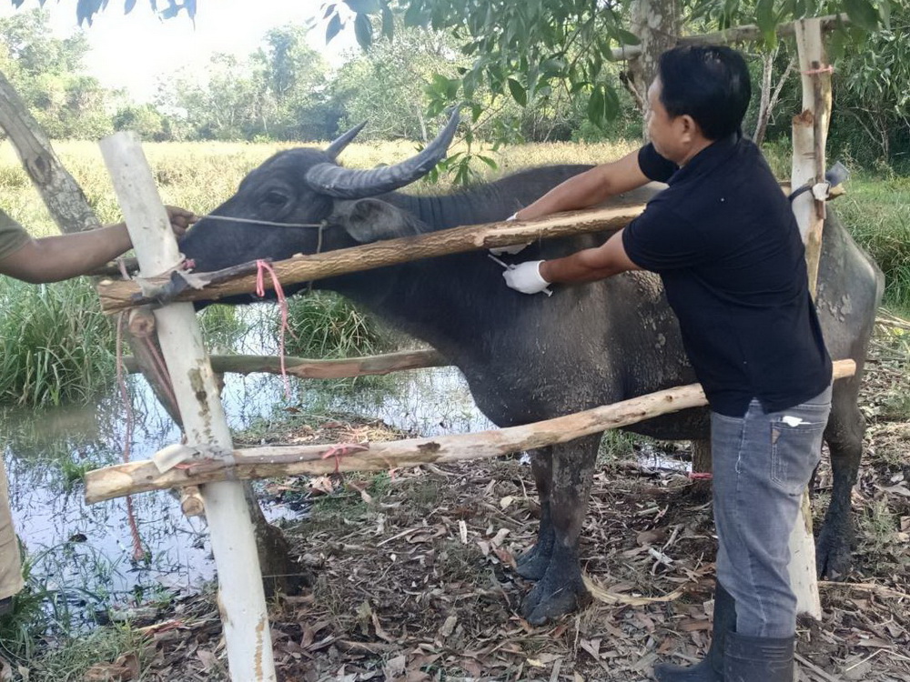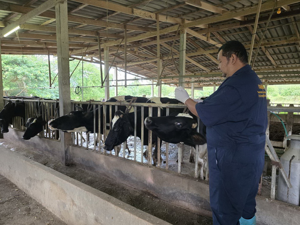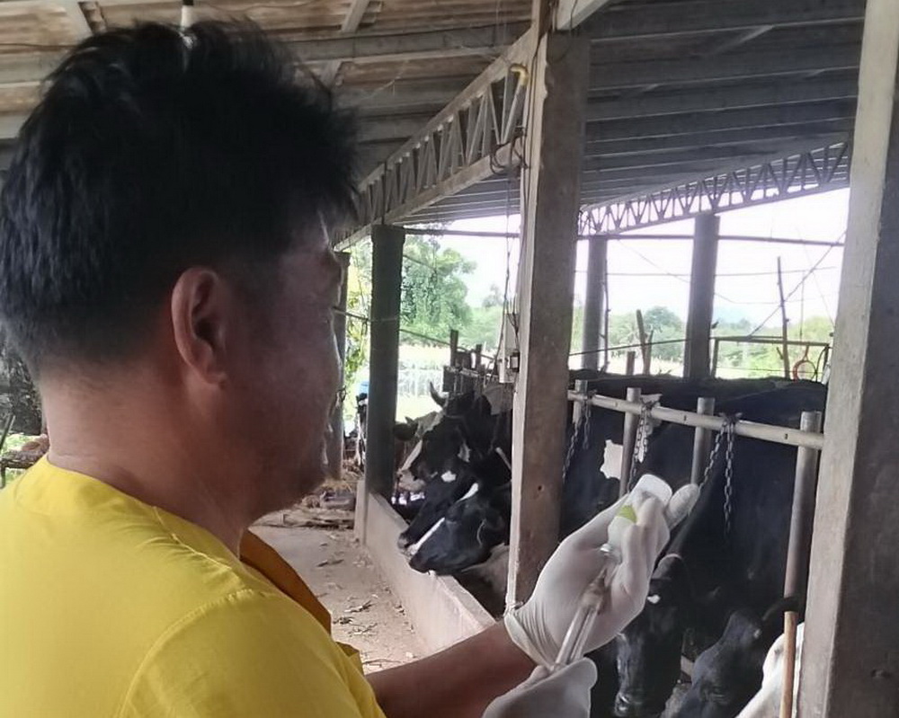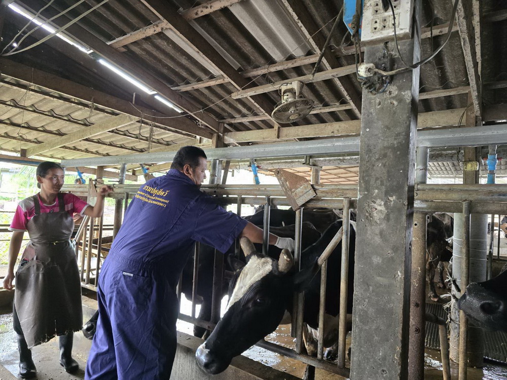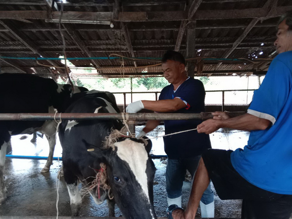 ฉีดวัคซีนจำนวน 8 ฟาร์ม โคนม 774 ตัว แนะนำเกษตรกรถ้าพบโคนมที่ฉีดวัคซีนมีอาการแพ้วัคซีน มีผื่น มีไข้หน้าตาบวม ตัวสั่น ให้รีบแจ้งเจ้าหน้าที่ทันที