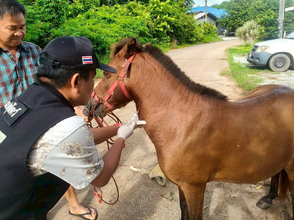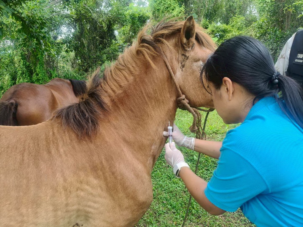 วันที่ 12 กันยายน 2568เวลา 08.30 น. นายสมพร พานิชรัมย์ ปศุสัตว์อำเภอแหลมสิงห์ รักษาราชการแทนปศุสัตว์อำเภอท่าใหม่ พร้อมด้วยเจ้าหน้าที่ปศุสัตว์อำเภอท่าใหม่ ลงพื้นที่ปฏิบัติงานเก็บตัวอย่างซีรั่มในม้า พร้อมลงข้อมูล LIM จากโครงการเฝ้าระวังโรคอหิวาร์แอริกาในม้า ในพื้นที่ ต.ทุ่งเบญจา, ต.เขาแก้ว, ต.เขาบายศรี, ต.ท่าใหม่ และต.ตะกาดเง้า อ.ท่าใหม่ จ.จันทบุรี รวมม้าทั้งหมด 18 ตัว พร้อมให้คำแนะดูแลสุขภาพม้าในช่วงอากาศเปลี่ยนแปลง
