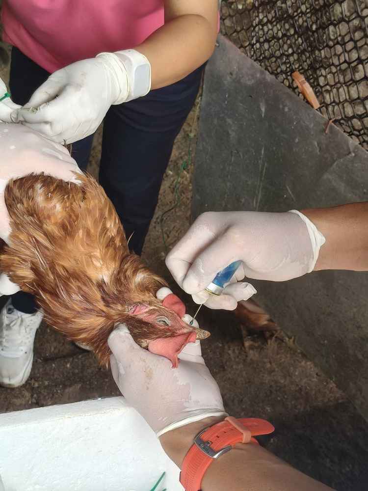 ลงพื้นที่ ตำบลตะกาดเง้า เพื่อตรวจเยี่ยมเกษตรกรพร้อมทำวัคซีนป้องกันโรค ในไก่พื้นเมือง จำนวน 2 ราย พร้อมมอบยาซองปฏิชีวนะ และน้ำยาฆ่าเชื้อโรค ให้ฉีดพ่นพื้นคอก บริเวณที่สัตว์พักอาศัย ให้คำแนะนำในการดูแลสุขภาพสัตว์ช่วงอากาศเปลี่ยน