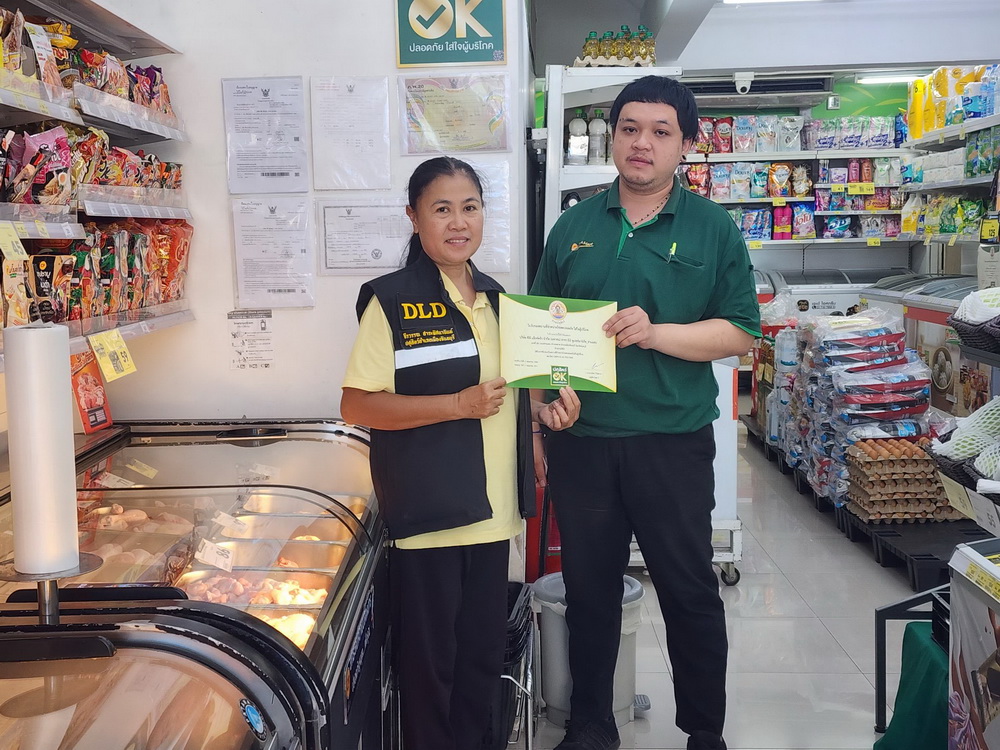 วันที่ 22 กันยายน 2568 เวลา 13.30 น. นางสาวจีรวรรณ สาระทัศนานันท์ ปศุสัตว์อำเภอเมืองจันทบุรี และนายนที มาทรัพย์ตำแหน่งเจ้าพนักงานสัตวบาล ลงพื้นที่ มอบใบต่ออายุโครงการไข่สดปลอดภัย ใส่ใจผู้บริโภค (ปศุสัตว์ OK) ดำเนินการมอบใบต่ออายุ ร้านค้าเพื่อรับรองสถานที่จำหน่ายไข่สดที่มีสุขลักษณะที่ดี ไม่มีสารตกค้าง และสามารถตรวจสอบย้อนกลับได้เพื่อขอรับรอง พร้อมแนะนำหลักการปฏิบัติที่ดีตามมาตรฐานกรมปศุสัตว์กำหนดในการจำหน่ายไข่สด