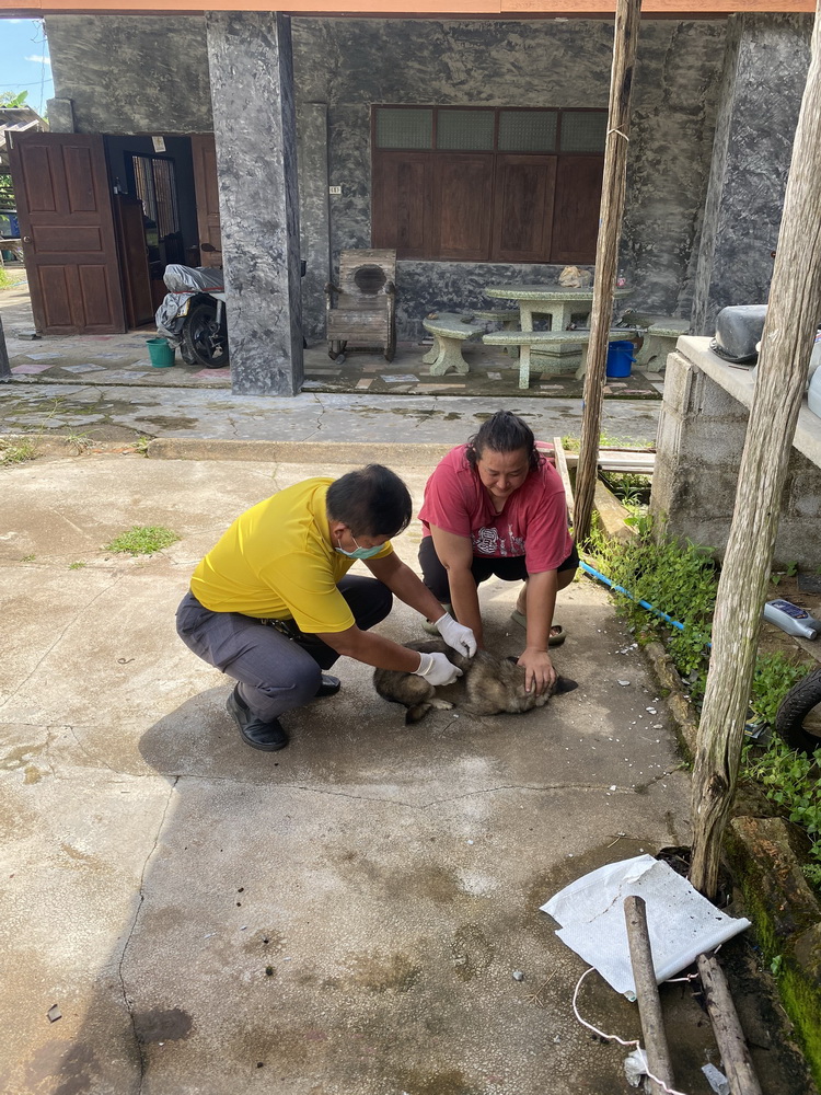 ลงพื้นที่ร่วมกับเจ้าหน้าที่เทศบาลเขาบายศรี ผู้ใหญ่บ้าน ผู้ช่วยผู้ใหญ่บ้าน ในพื้นที่ หมู่ที่ 6 และ 9 ตำบลเขาบายศรี อำเภอท่าใหม่ จังหวัดจันทบุรี เพื่อฉีดวัคซีนป้องกันโรคพิษสุนัขบ้าในสุนัขจำนวน 255 ตัว แมวจำนวน 34 ตัว และได้ประชาสัมพันธ์ให้ชาวบ้านที่พบสัตว์ต้องสงสัยหรือถูกสัตว์กัด เบื้องต้นให้รีบแจ้งเจ้าหน้าที่ในพื้นที่โดยทันที เพื่อดำเนินการตามมาตรการควบคุมโรค หน่วยงานที่เกี่ยวข้องจะติดตามสถานการณ์อย่างใกล้ชิด และดำเนินมาตรการควบคุมโรคอย่างเข้มงวด เพื่อความปลอดภัยของชุมชน