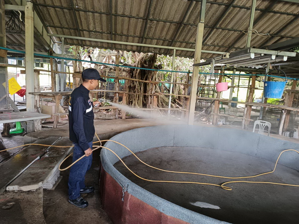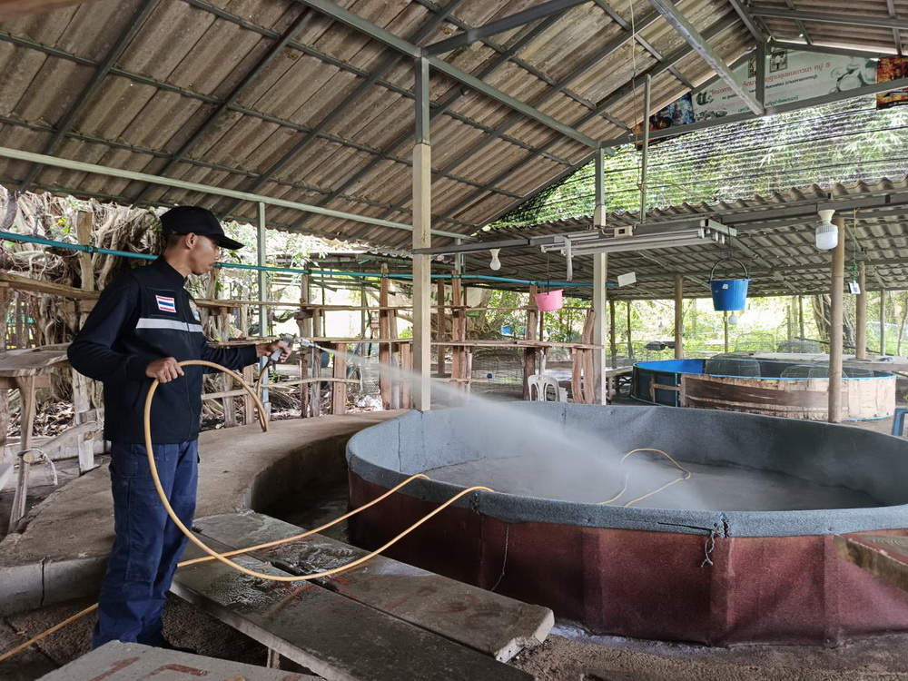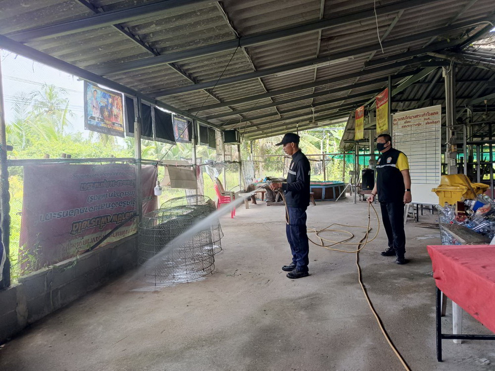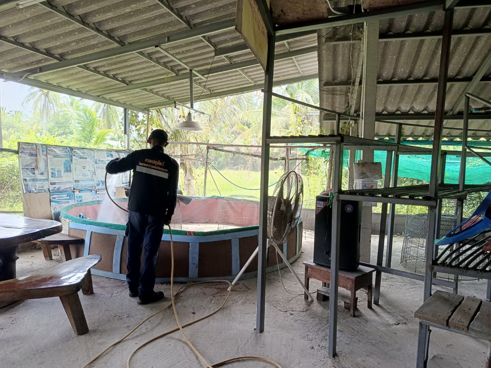 วันที่ 9 ตุลาคม 2568 เวลา 09.00 น. นายอยุทธ์ รจนากูล ปศุสัตว์อำเภอขลุง รักษาราชการแทนปศุสัตว์อำเภอแหลมสิงห์ มอบหมายให้มอบหมายให้นางสาวสิริกร กรทรัพย์ เจ้าพนักงานสัตวบาล และนายพัฒนะ ธรรมเจริญ พนักงานจ้างเหมาบริการช่วยงานด้วยสัตวแพทย์ ร่วมกับ ด่านกักกันสัตว์จันทบุรี ลงพื้นที่ ณ สนามชนไก่บางสระเก้า ม.5 ต.บางสระเก้า อ.แหลมสิงห์ ดำเนินการพ่นน้ำยาฆ่าเชื้อโรคทำความสะอาดและทำลายเชื้อไข้หวัดนกในพื้นที่เสี่ยง ครั้งที่ 1/2569 พร้อมทั้งให้คำแนะนำ ความรู้เรื่องไข้หวัดนก และการสังเกต เฝ้าระวังการเกิดโรคไข้หวัดนกแก่เกษตรกรผู้เลี้ยงสัตว์ปีก เพื่อป้องกันโรคช่วยลดความสูญเสียที่อาจเกิดจากการระบาดของโรคไข้หวัดนก