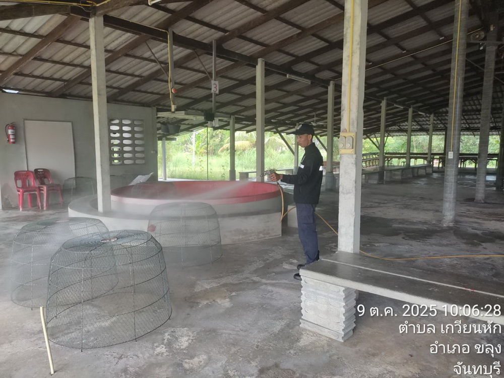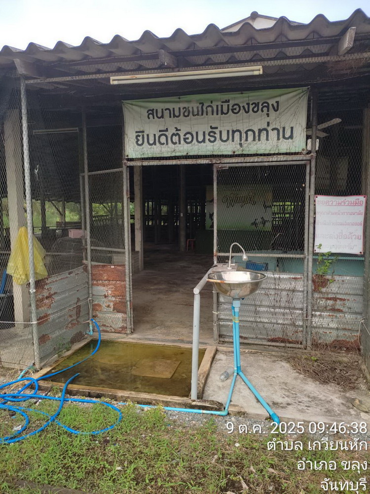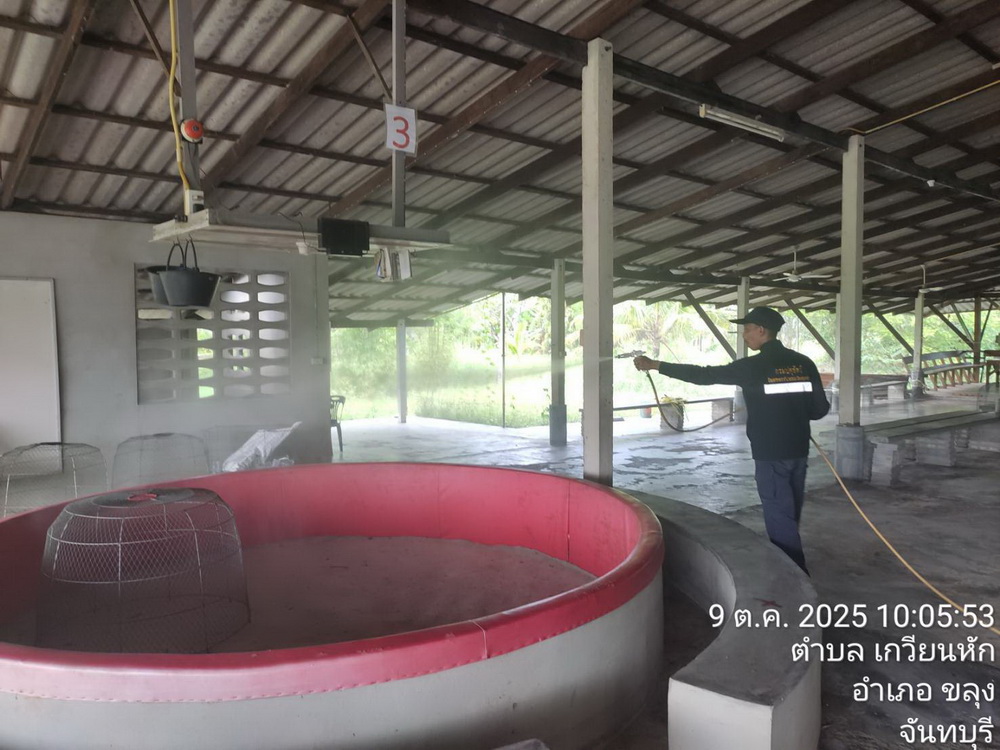 วันที่ 9 ตุลาคม 2568 เวลา 10.00 น. นายอยุทธ์ รจนากูล ปศุสัตว์อำเภอขลุง มอบหมายให้นายเจษฎา สีสุธก เจ้าพนักงานสัตวบาล และนางสาวสุนันทา ใสจันทึก พนักงานจ้างเหมาบริการช่วยงานด้วยสัตวแพทย์ ร่วมกับ ด่านกักกันสัตว์จันทบุรี ลงพื้นที่ ณ สนามชนไก่เมืองขลุง ม.10 ต.เกวียนหัก อ.ขลุง ดำเนินการพ่นน้ำยาฆ่าเชื้อโรคทำความสะอาดและทำลายเชื้อไข้หวัดนกในพื้นที่เสี่ยง ครั้งที่ 1/2569 พร้อมทั้งให้คำแนะนำ ความรู้เรื่องไข้หวัดนก และการสังเกต เฝ้าระวังการเกิดโรคไข้หวัดนกแก่เกษตรกรผู้เลี้ยงสัตว์ปีก เพื่อป้องกันโรคช่วยลดความสูญเสียที่อาจเกิดจากการระบาดของโรคไข้หวัดนก