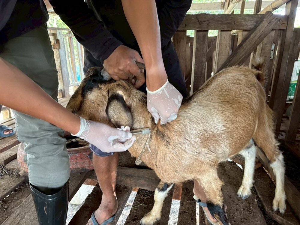 วันที่ 13 พฤศจิกายน 2568 เวลา 09.30 น. นายสมพร พานิชรัมย์ ปศุสัตว์อำเภอแหลมสิงห์ รักษาราชการแทน ปศุสัตว์อำเภอท่าใหม่ พร้อมด้วยเจ้าหน้าที่ปศุสัตว์อำเภอท่าใหม่